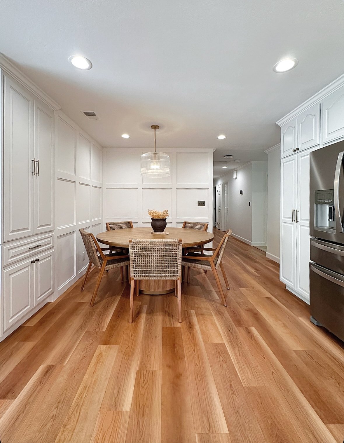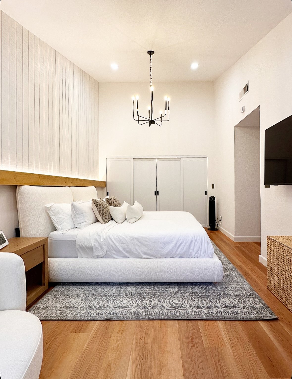 This Modern Contemporary Minimalist Design focuses on functionality. This space is designed to be practical and efficient, reducing clutter and promoting organization. This creates environments that are not only visually appealing but also comfortable and easy to use. With the use of white and neutral tones and some wood texture it encourages natural light and better flow, which can improve mood and productivity.