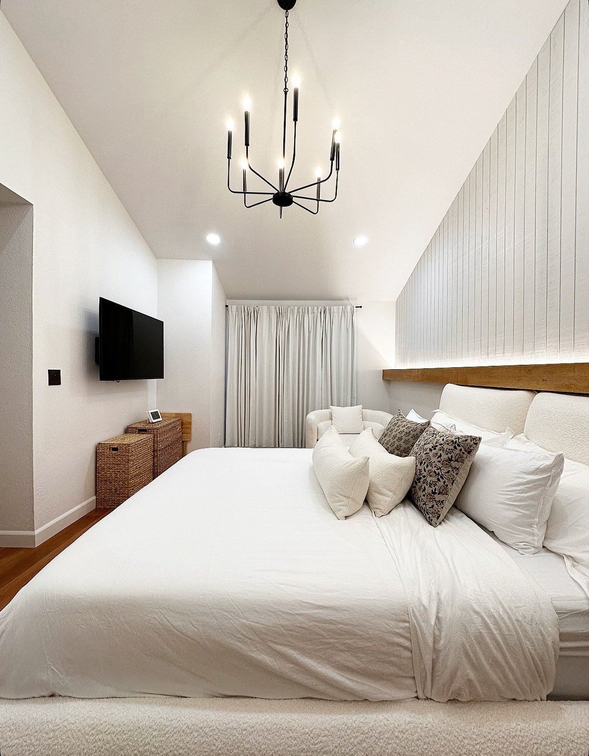 This Modern Contemporary Minimalist Design focuses on functionality. This space is designed to be practical and efficient, reducing clutter and promoting organization. This creates environments that are not only visually appealing but also comfortable and easy to use. With the use of white and neutral tones and some wood texture it encourages natural light and better flow, which can improve mood and productivity.